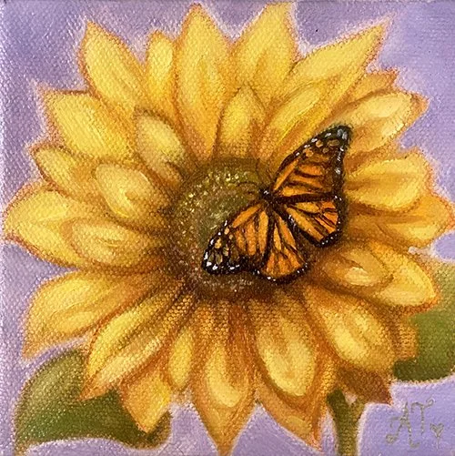 Shop › Sunflower with Butterfly Image 1 of 1 Sunflower with Butterfly $125.00 sold out 6x6”, oil on wrapped canvas, unframed with painted sides. Wired for hanging. Sold Out Added! 6x6”, oil on wrapped canvas, unframed with painted sides. Wired for hanging.